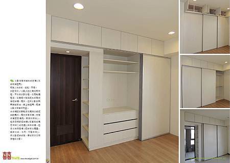 所以就結合電視、洗手間門、衣物收納,做整面的橫拉門櫃體進行包覆,