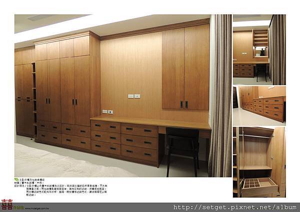 主臥房的空間保留整體平面的視覺,用傳統實木的顏色卻結合好用的系統櫃內在